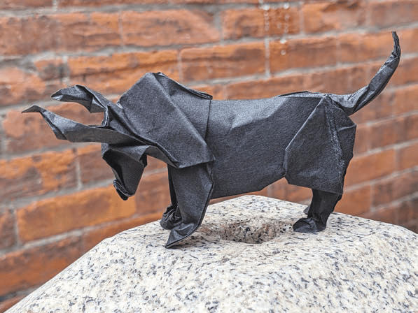 Throughout the month of September, Black Ink will be offering Origami bulls designed by Stephen Weber and folded by Skaff for a contribution of $25 or more to the day shelter. (Black Ink can only accept cash donation for the origami pieces, however, as they aren’t store inventory.) Each Origami bull measures 24-by-24 centimeters and is made using Nicolas Terry Tissue Foil Origami specialty paper from France.