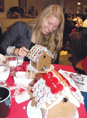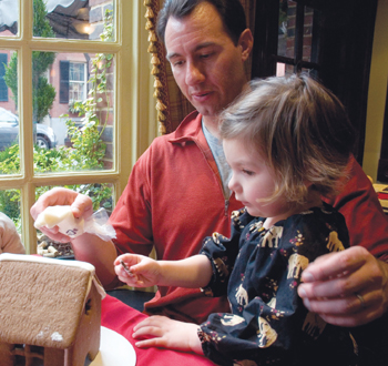 A Christmas tradition continued on Saturday afternoon at 75 Chestnut Street Restaurant where residents came to decorate their Gingerbread Houses. In addition to having a fun time, a portion of the proceeds was donated to the local charity, Cheers for Children. In the top photo Jon Lopez helps his daughter Sadie Lopez by putting on the frosting