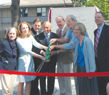 News Eliot Memorial Re-opening by Beacon Hill Times Staff • August 8, 2014 • 0 Comments Gov. Deval Patrick, flanked by other state officials and Esplanade Association representatives, cuts the ribbon on the newly renovated Charles Eliot Memorial on the Charles River Esplanade.