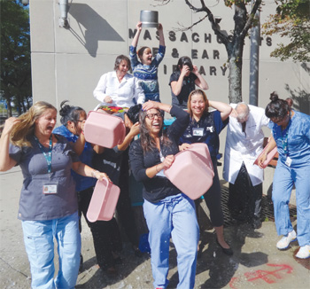 Mass. Eye and Ear’s ENT clinical team, including Dr. Allan Goldstein, took the ALS Ice Bucket Challenge on Friday, Aug. 8, in front of the hospital.